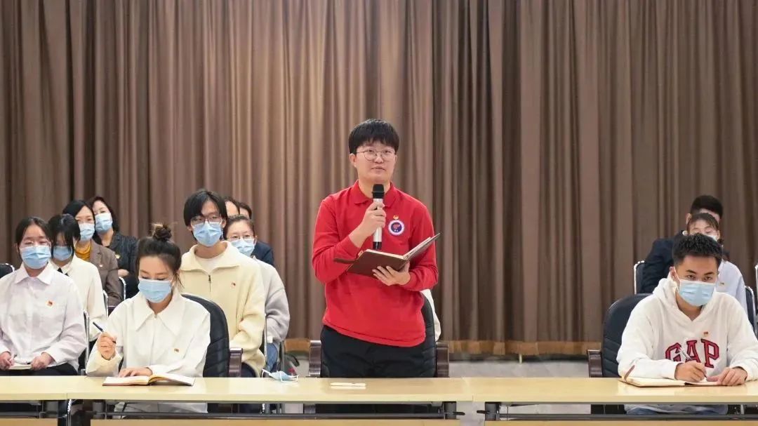 校红旗班班长、退役大学生士兵韩笑提出在青春的赛道上,我们如何成长为有理想、敢担当、能吃苦、肯奋斗的新时代好青年,褚新红表示,新时代青年应志存高远,树立终身学习的理念,用党的创新理论武装头脑、指导实践、推动工作,将个人的成长融入时代的发展,勇于创新,深钻细研,在磨砺中提升自己,不辜负我们这个伟大时代。