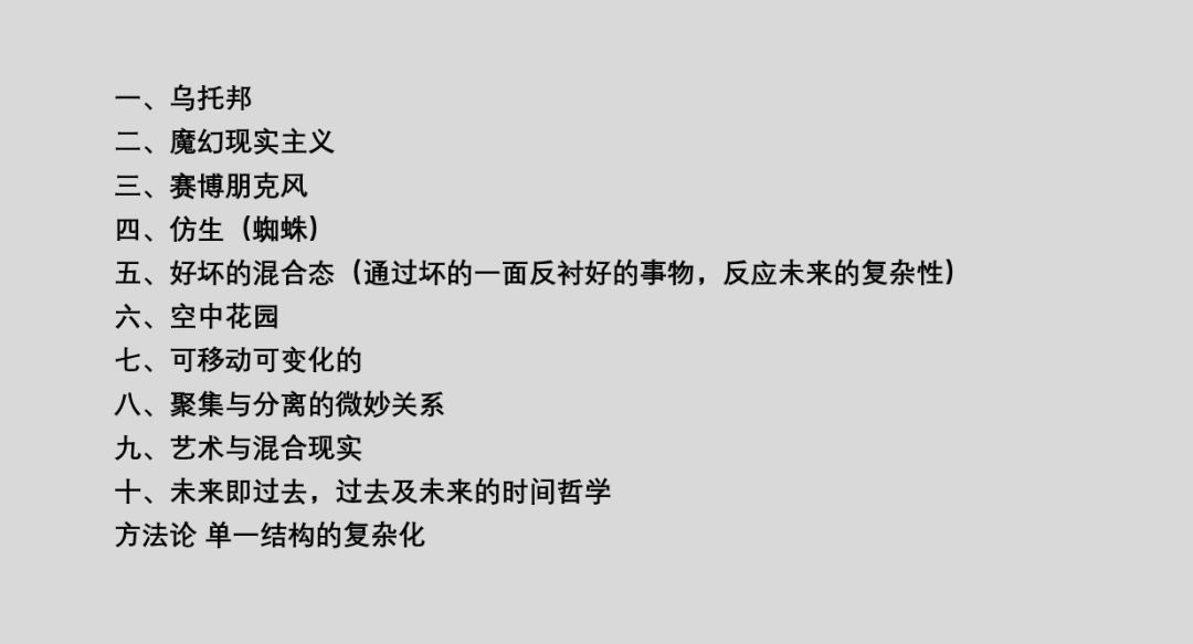 然而随着小组的讨论以及汇报以及方向的局限性,我们逐渐筛选出了以下五点(图2),而且小组普遍对第四个方向,也就是从时间的轴线上去解题更为推荐,这也是我们复古未来的底层逻辑来源。